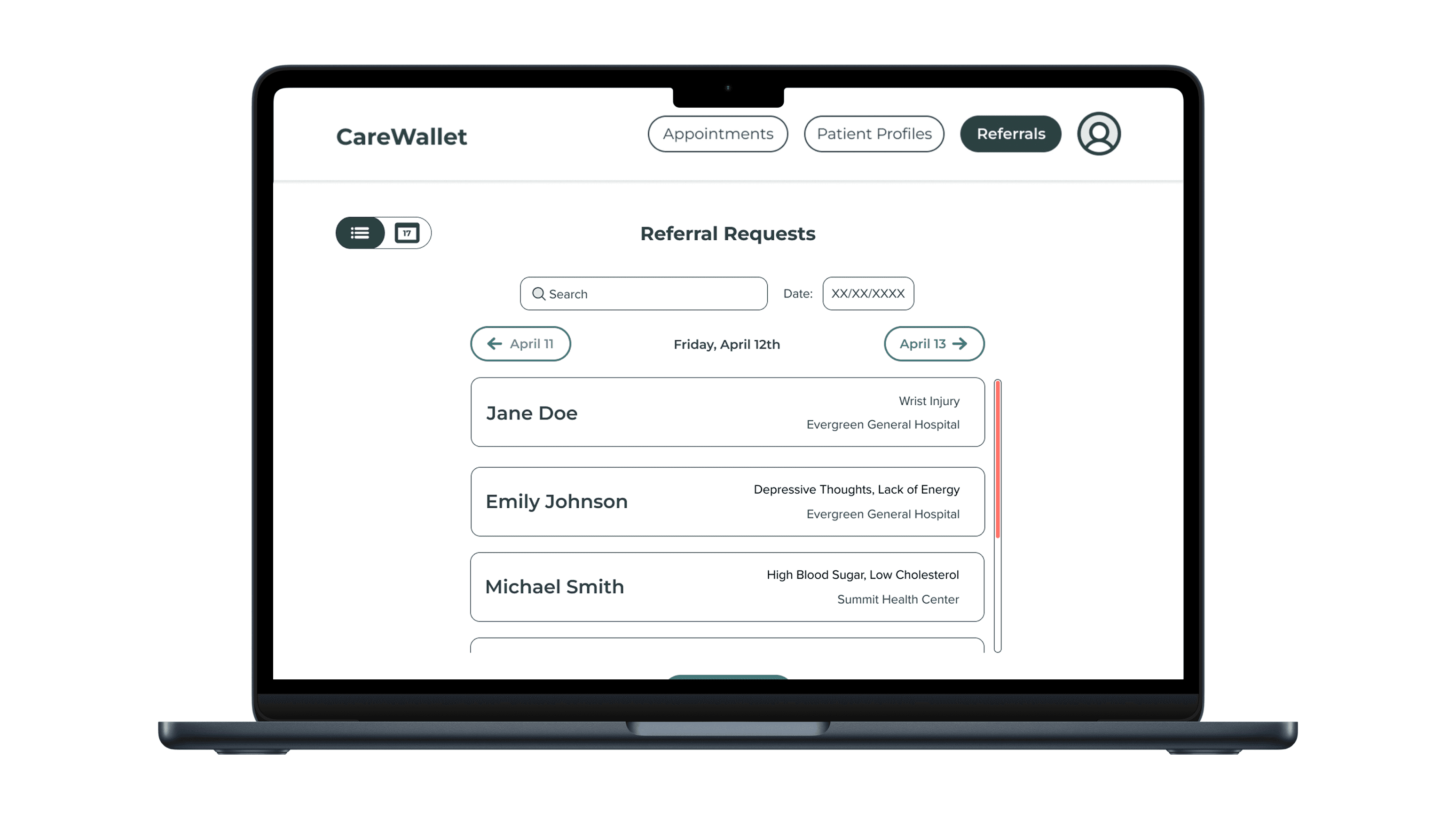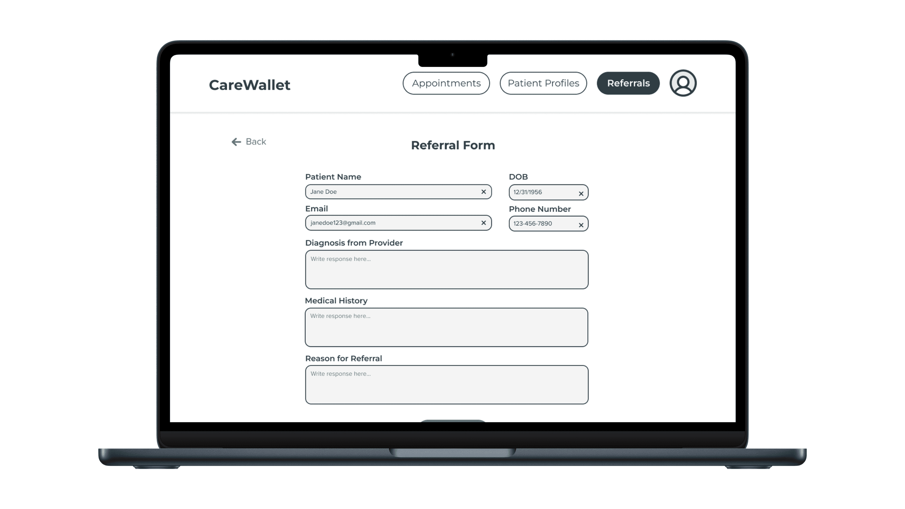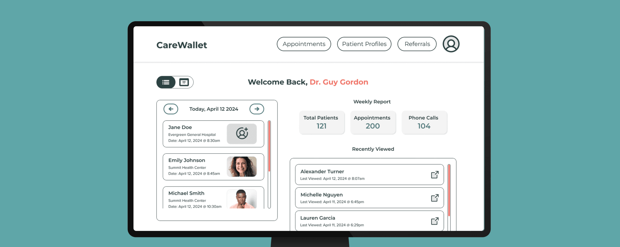CareWallet aims to strengthen the patient-provider relationship and increase efficiency in the healthcare industry. The desktop app shows patients' comprehensive medical history to give the doctor a holistic view when addressing symptoms and potential treatment plans. CareWallet also provides a digital referral feature to decrease the time and friction for patients to get the specialized care they deserve.