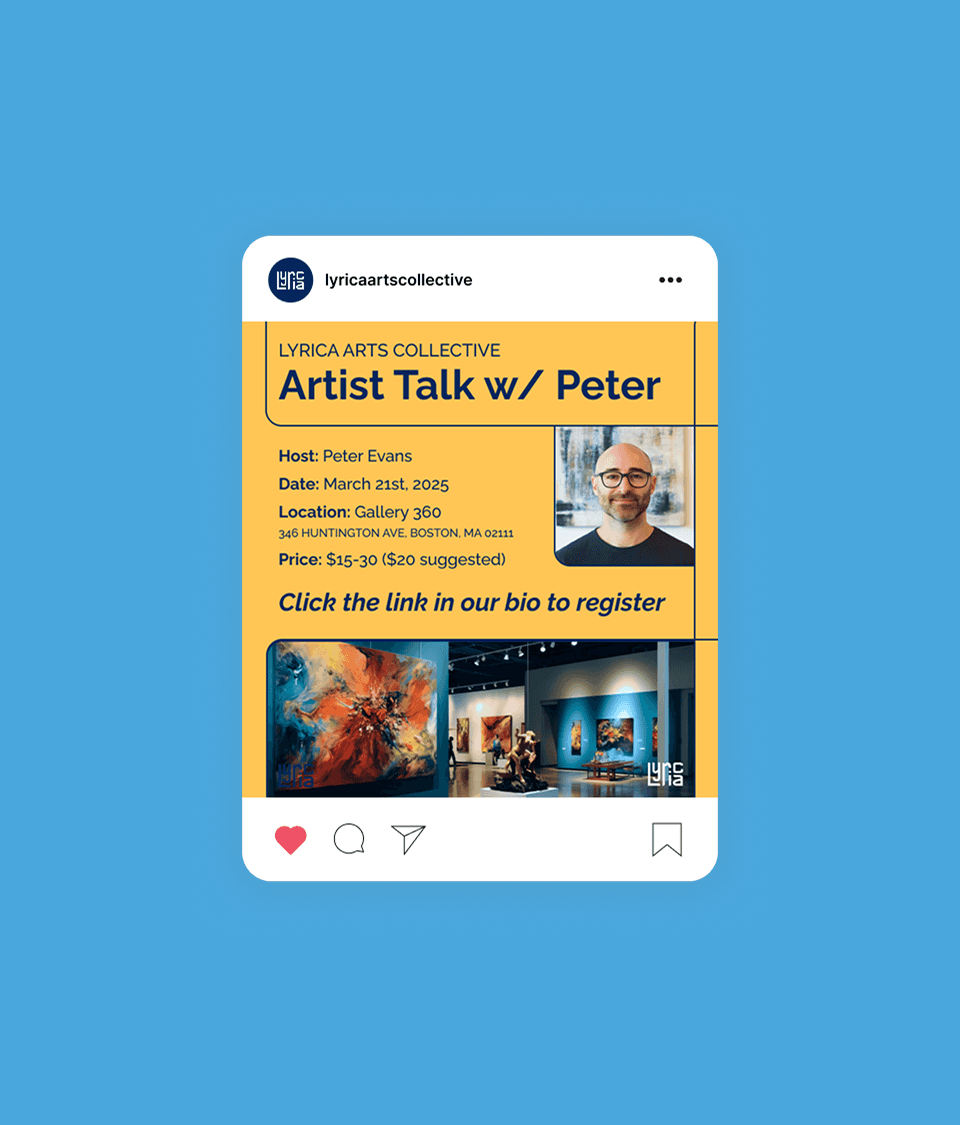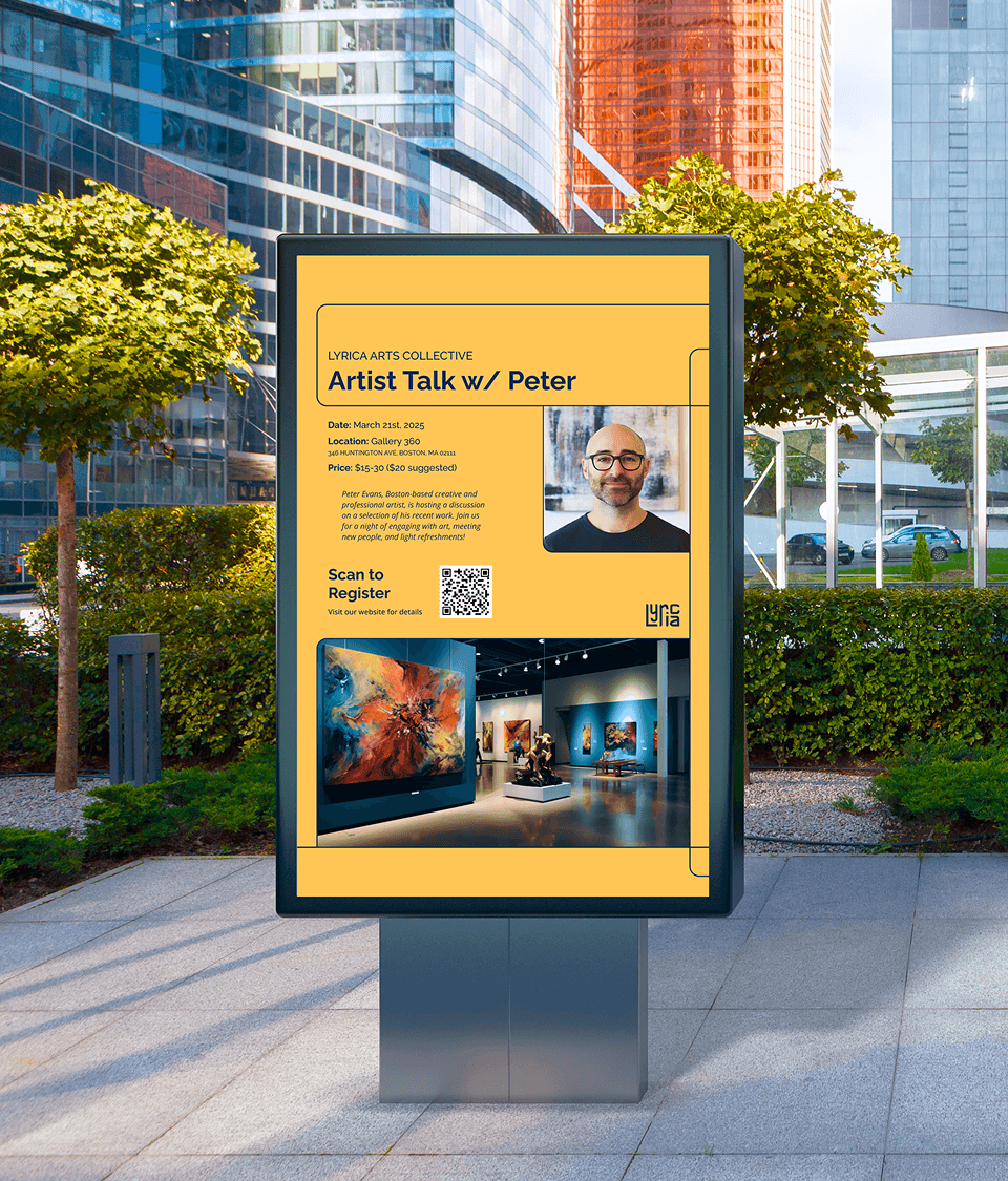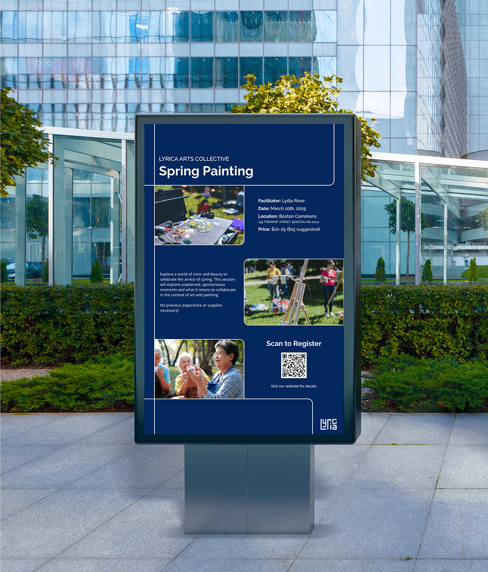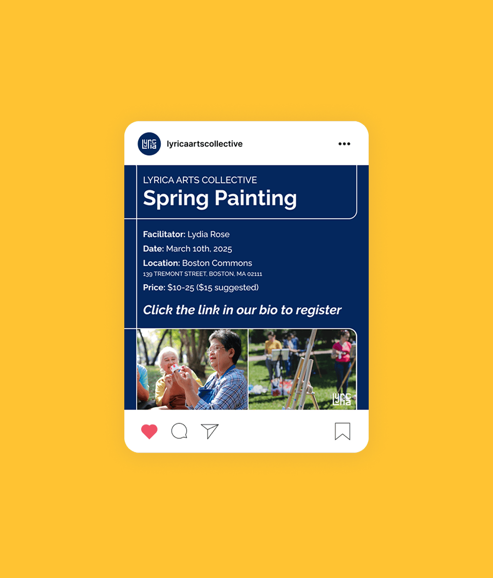 Lyrica Arts Collective is a concept for an arts non-profit that creates programming and initiatives to support the Greater Boston art community. Grounded in human connection, Lyrica hosts a variety of art sessions and community events to facilitate a space for creativity and empowerment.