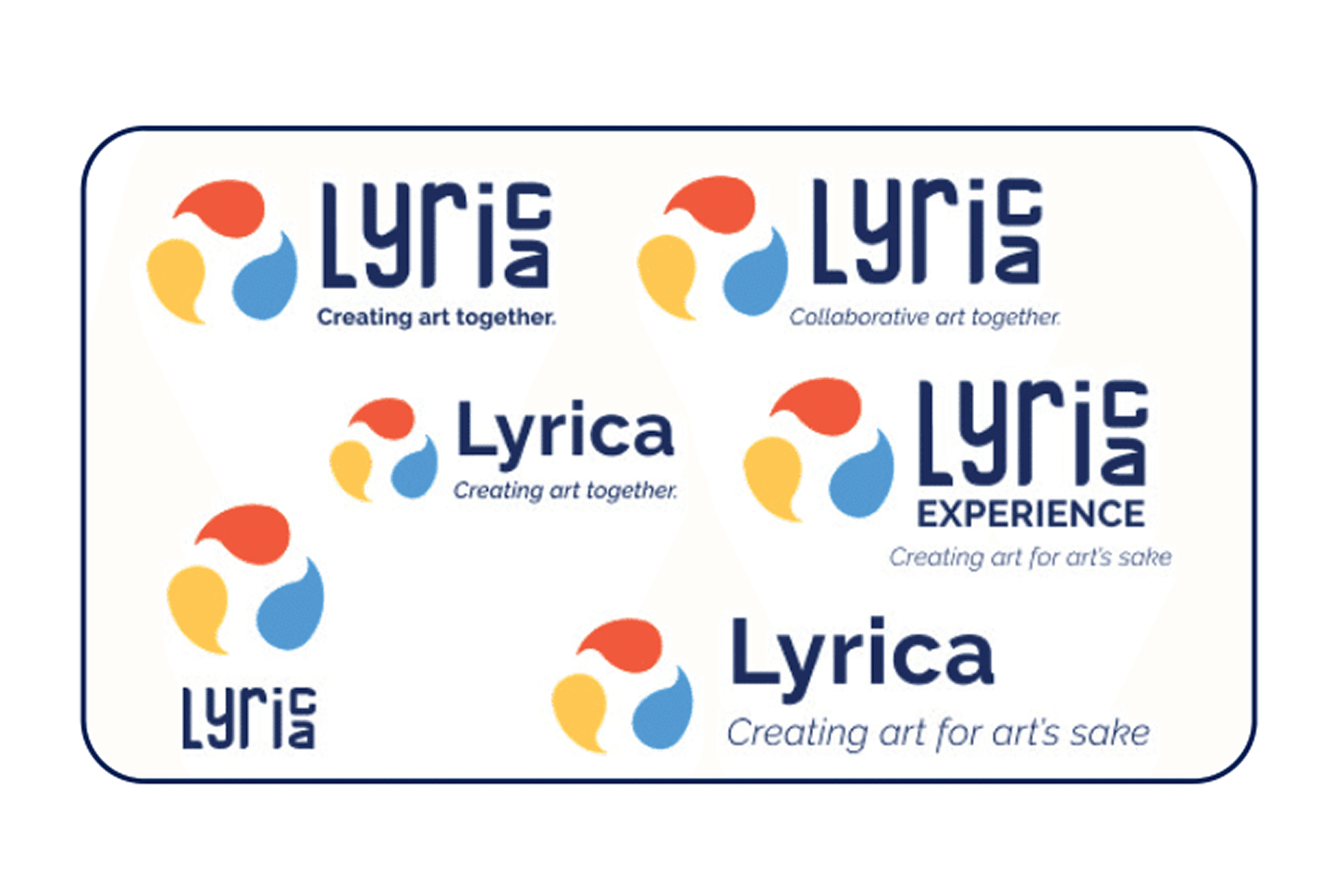 When creating the visual identity for Lyrica, there were many different ideas for the word mark and logo of the brand. I decided to drop the three–colored paint drop logo because I thought it overshadowed the strong logotype I already designed and didn’t represent the organization's collaborative, community–oriented spirit.